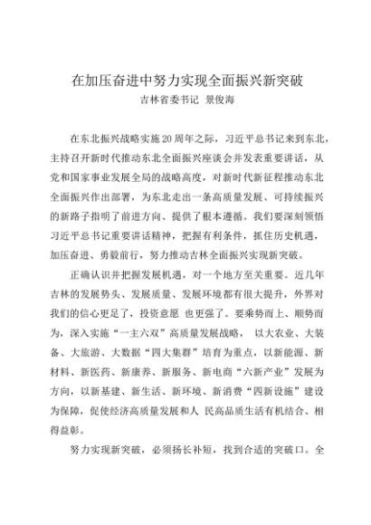 署名文章:20231230在加压奋进中努力实现全面振兴新突破——吉林省委书记 景俊海