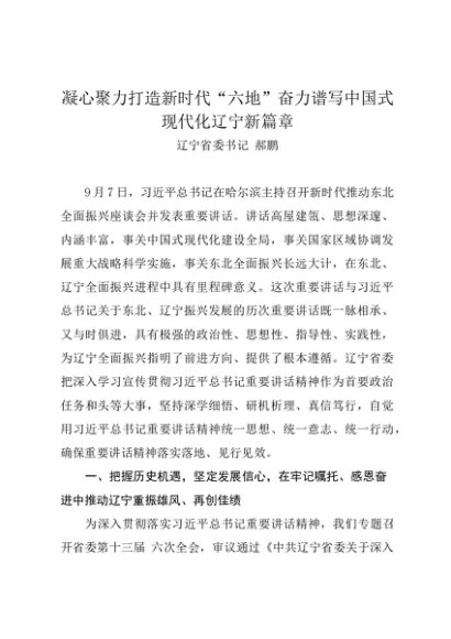 署名文章:20231230凝心聚力打造新时代“六地”奋力谱写中国式现代化辽宁新篇章——辽宁省委书记 郝鹏