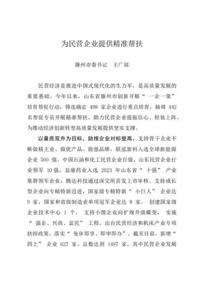 署名文章:20231228(民营经济)为民营企业提供精准帮扶——滕州市委书记 王广部