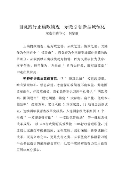 署名文章:20231218(政绩观 新型城镇化)自觉践行正确政绩观 示范引领新型城镇化——龙港市委书记 何宗静