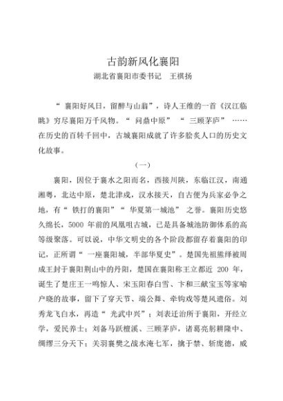 / 署名文章:20231222(城市推介)古韵新风化襄阳——襄阳市委书记 王祺扬