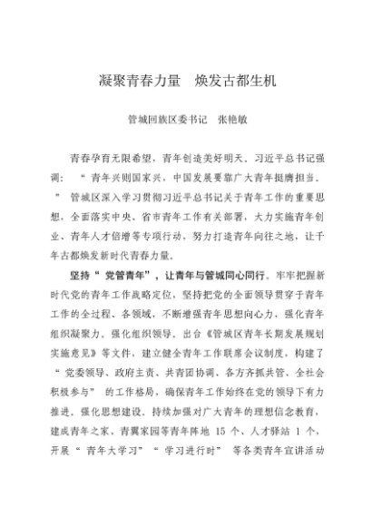 / 署名文章:20231218(青年工作)凝聚青春力量 焕发古都生机——管城回族区委书记张艳敏