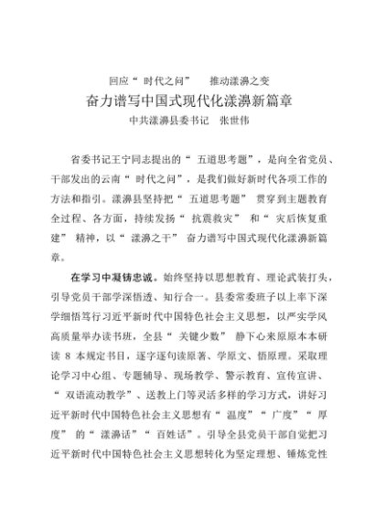 署名文章:20231214(主题教育 五道思考题)回应 时代之问推动漾濞之变——漾濞县委书记 张世伟