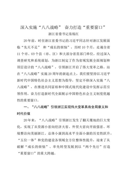 / 署名文章:20231130深入实施“八八战略” 奋力打造“重要窗口”——浙江省委书记易炼红