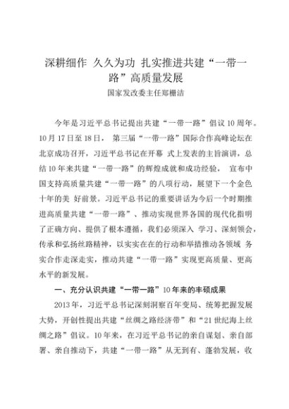 署名文章:20231130深耕细作 久久为功 扎实推进共建“一带一路”高质量发展——国家发改委主任郑栅洁