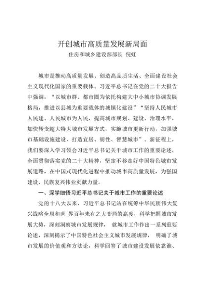署名文章:20231130开创城市高质量发展新局面——住房和城乡建设部部长 倪虹
