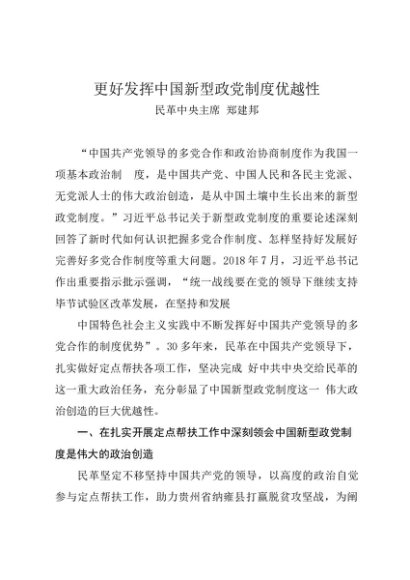 署名文章:20231130更好发挥中国新型政党制度优越性——民革中央主席 郑建邦