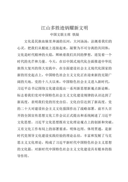 署名文章:20231130江山多胜迹炳耀新文明——中国文联主席 铁凝