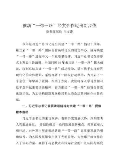 署名文章:20231130推动“一带一路”经贸合作迈出新步伐——商务部部长 王文涛