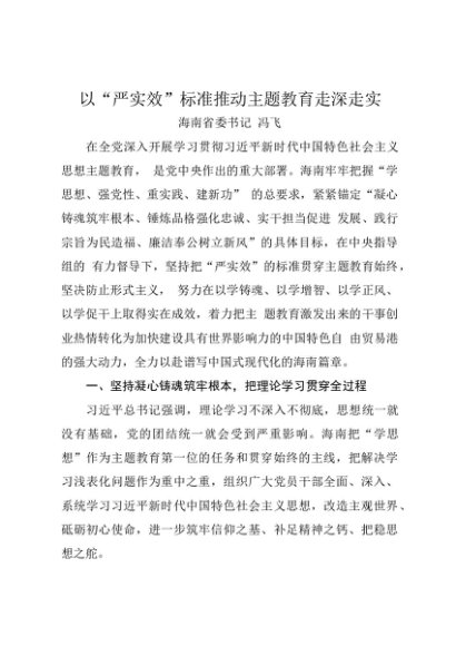 署名文章:20231130以“严实效”标准推动主题教育走深走实——海南省委书记 冯飞