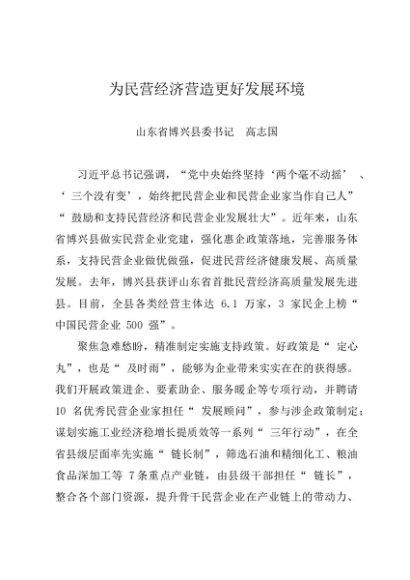 / 署名文章:20231120(民营经济)为民营经济营造更好发展环境——博兴县委书记 高志国