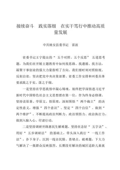 / 署名文章:20231107(主题教育 五道思考题)接续奋斗 践实落细 在实干笃行中推动高质量发展——姚安县委书记 雷波