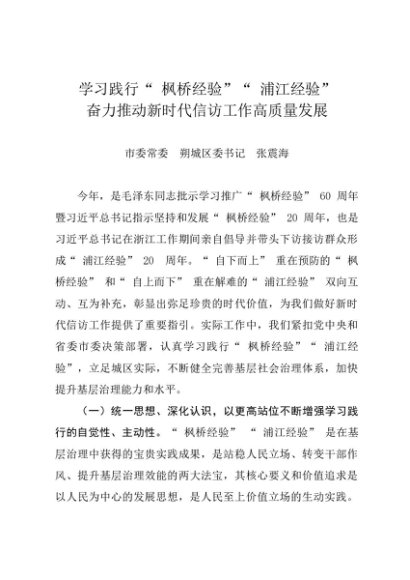 署名文章:20231124(信访工作)学习践行 枫桥经验、 浦江经验 奋力推动新时代信访工作高质量发展——朔城区委书记 张震海