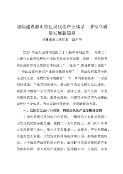 / 署名文章:20231108(现代化产业体系)加快建设特色现代化产业体系 谱写高质量发展新篇章——桂林市雁山区区长 潘军华