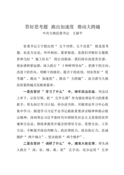 / 署名文章:20231109(主题教育 五道思考题)答好思考题 跑出加速度 推动大跨越——大姚县委书记 王丽平