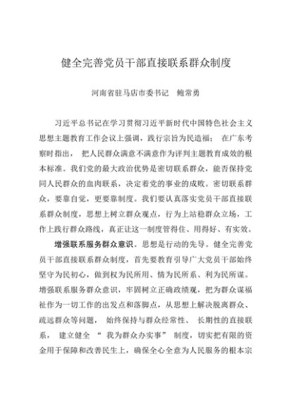 署名文章:20231106(群众工作)健全完善党员干部直接联系群众制度——驻马店市委书记 鲍常勇