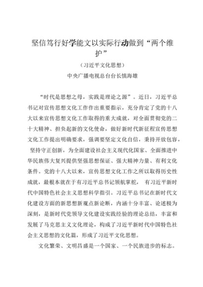 署名文章:20231030(习近平文化思想)坚信笃行好学能文以实际行动做到“两个维护”——中央广播电视总台台长慎海雄