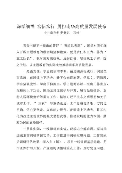 署名文章:20231104(主题教育 五道思考题)深学细悟 笃信笃行 勇担南华高质量发展使命——南华县委书记 马特