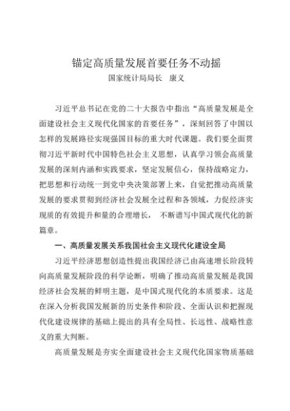 / 署名文章:20230930锚定高质量发展首要任务不动摇——国家统计局局长康义