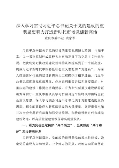 署名文章:20230930深入学习贯彻习近平总书记关于党的建设的重要思想着力打造新时代市域党建新高地——重庆市委书记袁家军