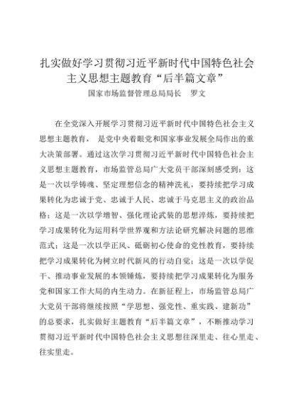 署名文章:20230930(主题教育)扎实做好学习贯彻习近平新时代中国特色社会主义思想主题教育“后半篇文章”——国家市场监督管理总局局长罗文