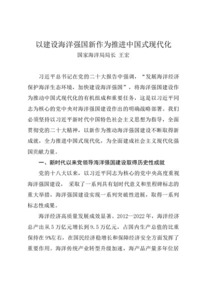 署名文章:20230930以建设海洋强国新作为推进中国式现代化——国家海洋局局长 王宏