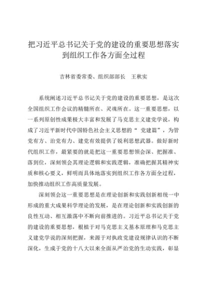/ 署名文章:20230913把习近平总书记关于党的建设的重要思想落实到组织工作各方面全过程——吉林省委组织部部长 王秋实