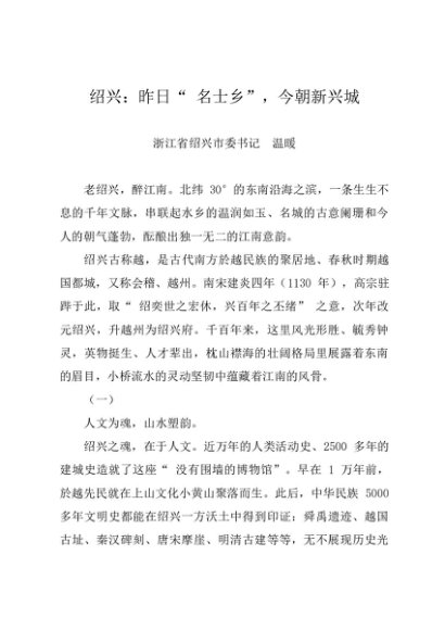 署名文章:20230922绍兴历史介绍:昨日“ 名士乡”,今朝新兴城——浙江省绍兴市委书记 温暖
