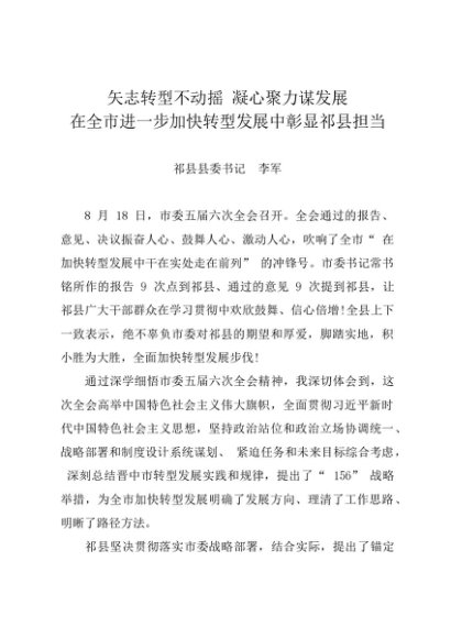 署名文章:20230914在全市进一步加快转型发展中彰显祁县担当——祁县县委书记 李军