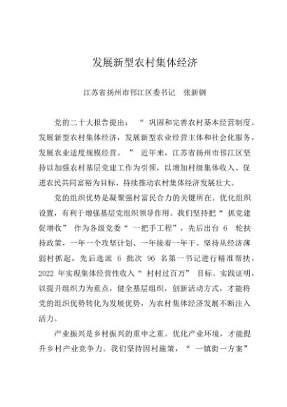 / 署名文章:20230911发展新型农村集体经济——扬州市邗江区委书记 张新钢
