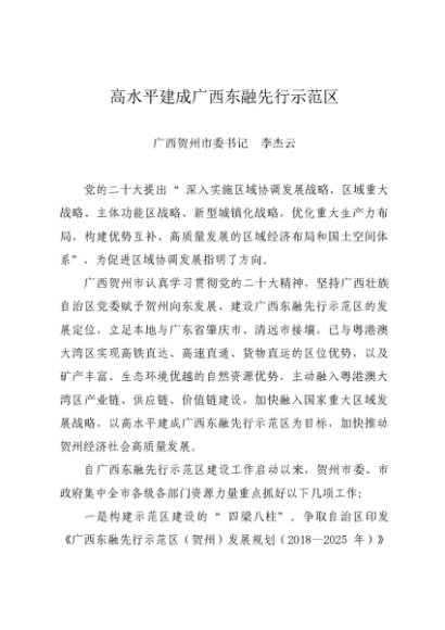 / 署名文章:20230914高水平建成广西东融先行示范区——贺州市委书记 李杰云