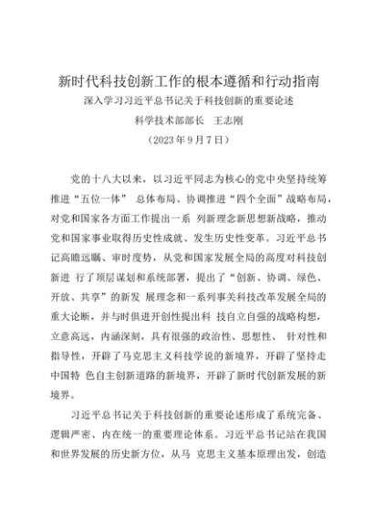 / 署名文章:20230907深入学习习近平总书记关于科技创新的重要论述——科学技术部部长王志刚