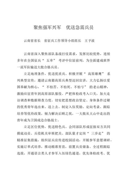 / 署名文章:20230903聚焦强军兴军 优送急需兵员,做好征兵工作——云南省省长 王予波