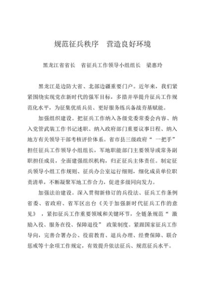 署名文章:20230903规范征兵秩序 营造良好环境 做好征兵工作——黑龙江省省长梁惠玲