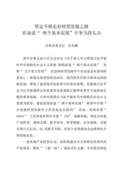 署名文章:20230906坚定不移走好转型发展之路在奋进“ 两个基本实现”中争当排头兵——介休市委书记 任光耀