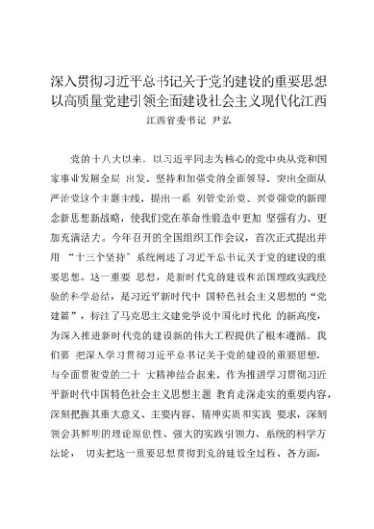 署名文章:20230830深入贯彻习近平总书记关于党的建设的重要思想以高质量党建引领全面建设社会主义现代化江西——江西省委书记 尹弘