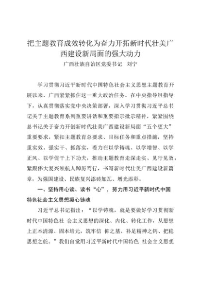 署名文章:20230830把主题教育成效转化为奋力开拓新时代壮美广西建设新局面的强大动力——广西区委书记刘宁