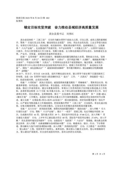 / 署名文章:20230824高台县委书记刘伟红:锚定目标攻坚突破奋力推动县域经济高质量发展