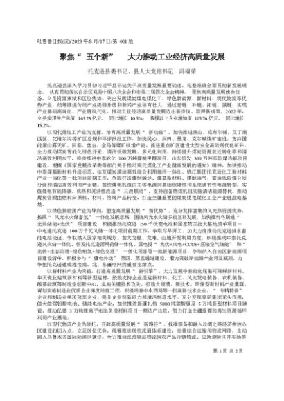/ 署名文章:20230817托克逊县委书记、县人大党组书记冯福荣:聚焦五个新大力推动工业经济高质量发展