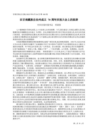 / 署名文章:20230816中共甘南州委书记何谋保:在甘南藏族自治州成立70周年庆祝大会上的致辞