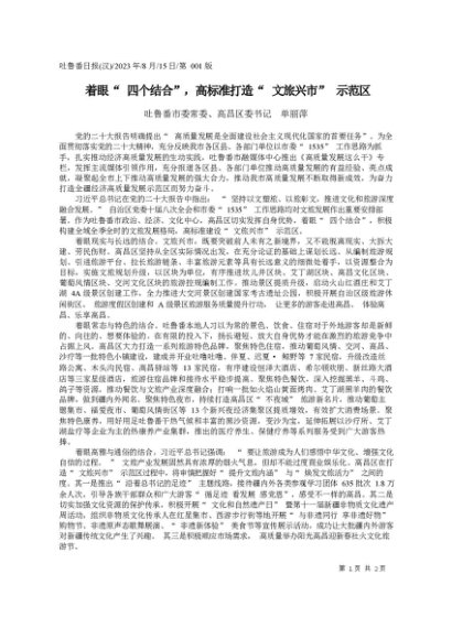 / 署名文章:20230816高昌区委书记单丽萍:着眼四个结合,高标准打造文旅兴市示范区