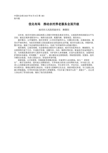 / 署名文章:20230804蛟河市人民政府副市长腾慧阳:优化布局推动农村养老服务全面升级
