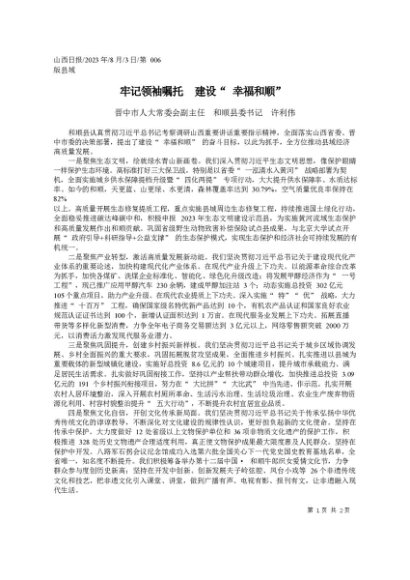 署名文章:20230803晋中市人大常委会副主任和顺县委书记许利伟:牢记领袖嘱托建设幸福和顺