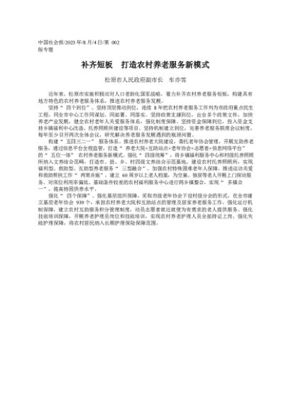 / 署名文章:20230804松原市人民政府副市长车亦雪:补齐短板打造农村养老服务新模式