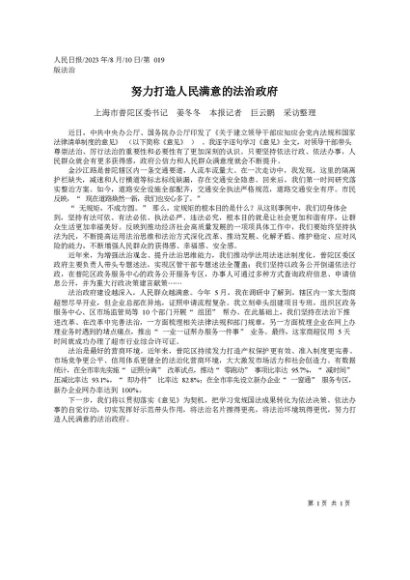 / 署名文章:20230810上海市普陀区委书记姜冬冬:努力打造人民满意的法治政府