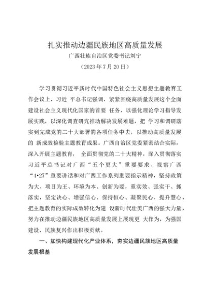/ 署名文章:20230720扎实推动边疆民族地区高质量发展——广西区委书记刘宁