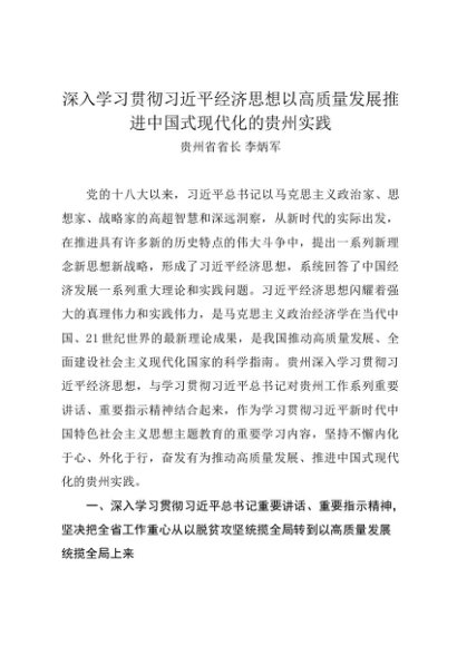 / 署名文章:20230600深入学习贯彻习近平经济思想以高质量发展推进中国式现代化的贵州实践——贵州省省长李炳军
