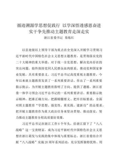 / 署名文章:20230600循迹溯源学思想促践行 以学深悟透感恩奋进实干争先推动主题教育走深走实——浙江省委书记易炼红