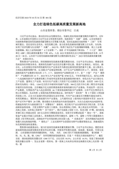 / 署名文章:2023.10.31山东省委常委、烟台市委书记江成:全力打造绿色低碳高质量发展新高地