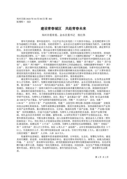 / 署名文章:2023.10.30郑州市委常委、金水区委书记张红伟:建设青春城区共赴青春未来